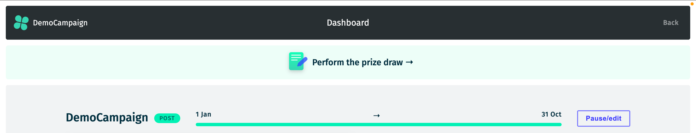 Once a campaign is completed, a third block becomes available, enabling you to select the winners of the Prize Draw (if applicable).