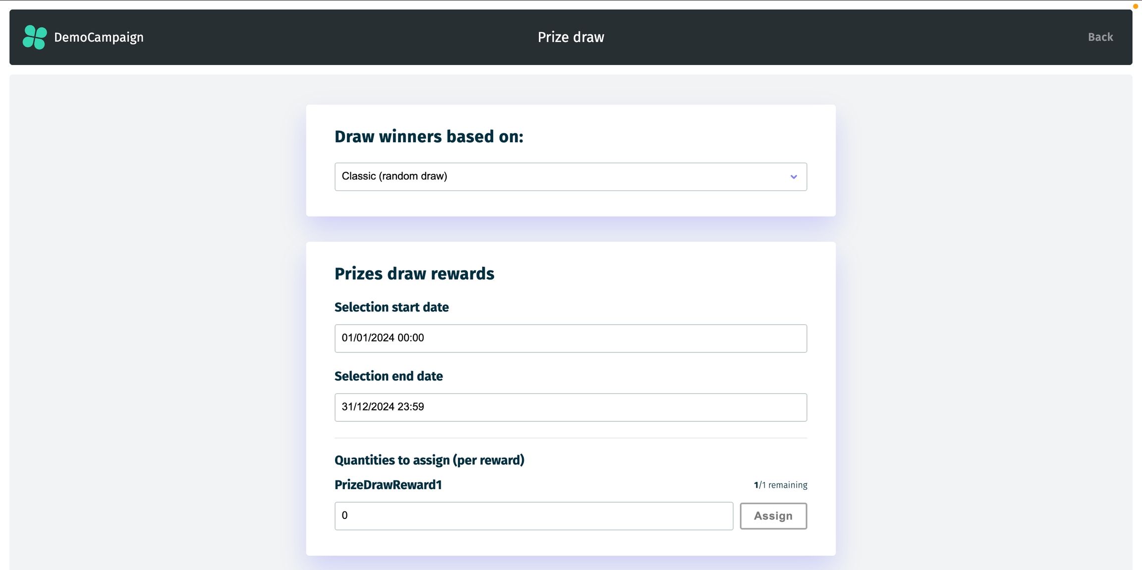 The Prize Draw Page provides you with tools to randomly select winners from the pool of participants, ensuring a fair and transparent process.
