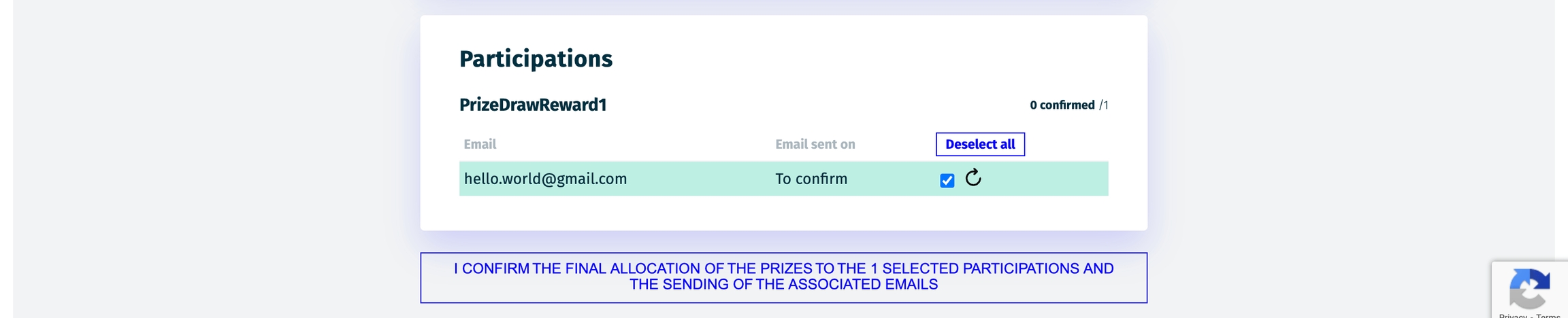 This page allows you to manage prize distribution and verify the results before notifying the winners, giving you full control over the selection process.
