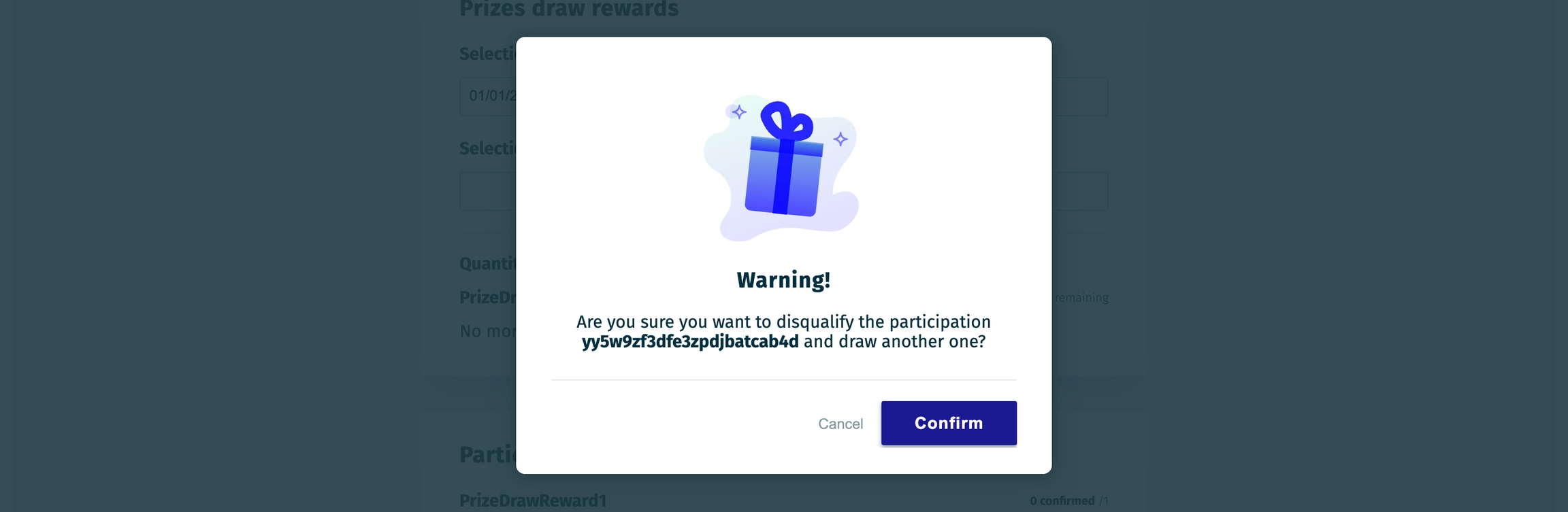 If a participation is invalid, you can redraw by clicking the rotating arrow icon and confirming in the pop-up, then repeat the process from Step 1 for the new entry!