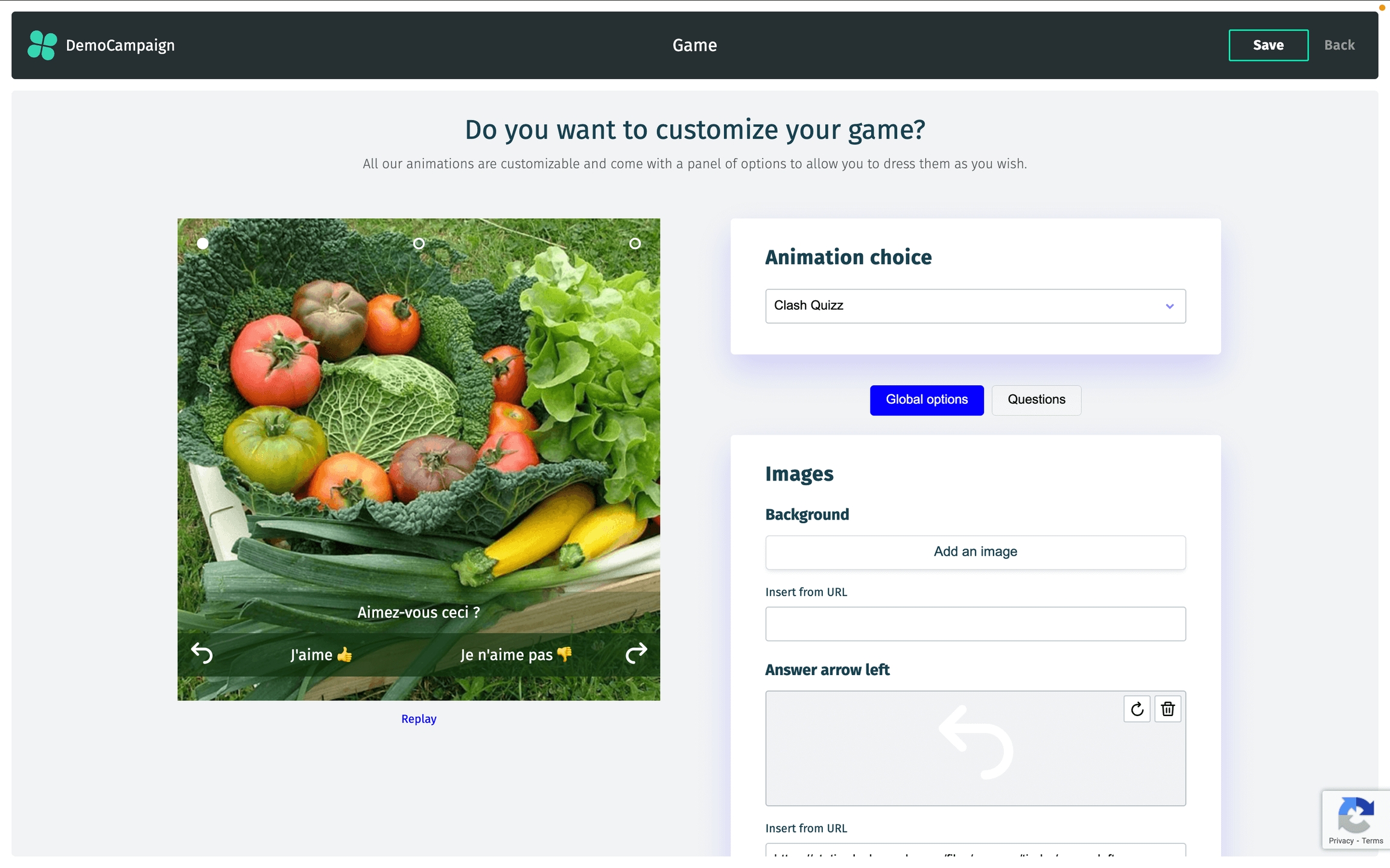 The Animation page allows you to select the game for your campaign (if you chose to include one during creation). Each game comes with its own set of customizable options.