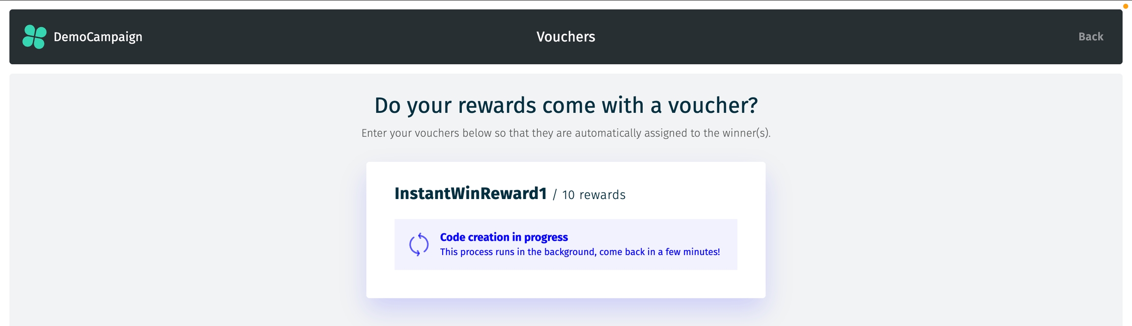 For each reward, a block will display the number of codes currently added and the expected amount.