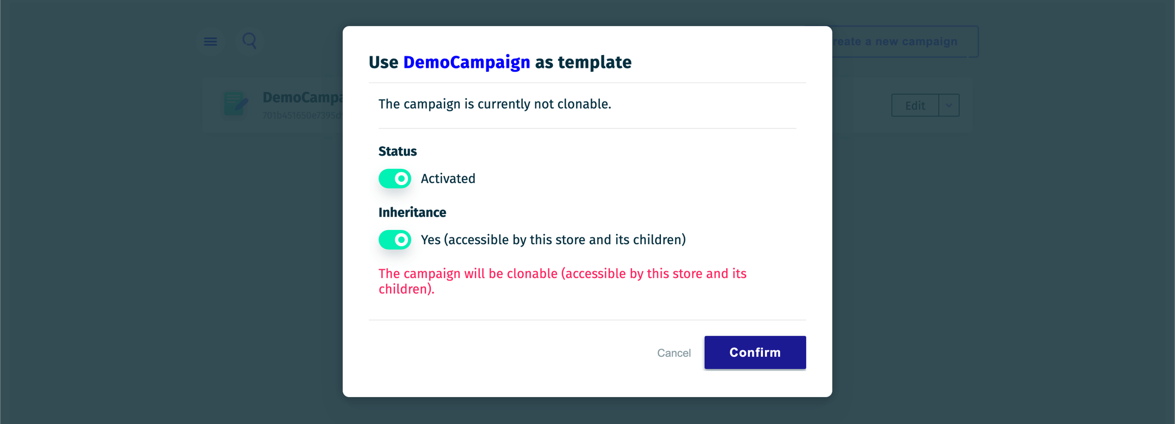 As explained, templates serve as base for campaigns. Additionally, they can be configured to be inherited by your sub-users.