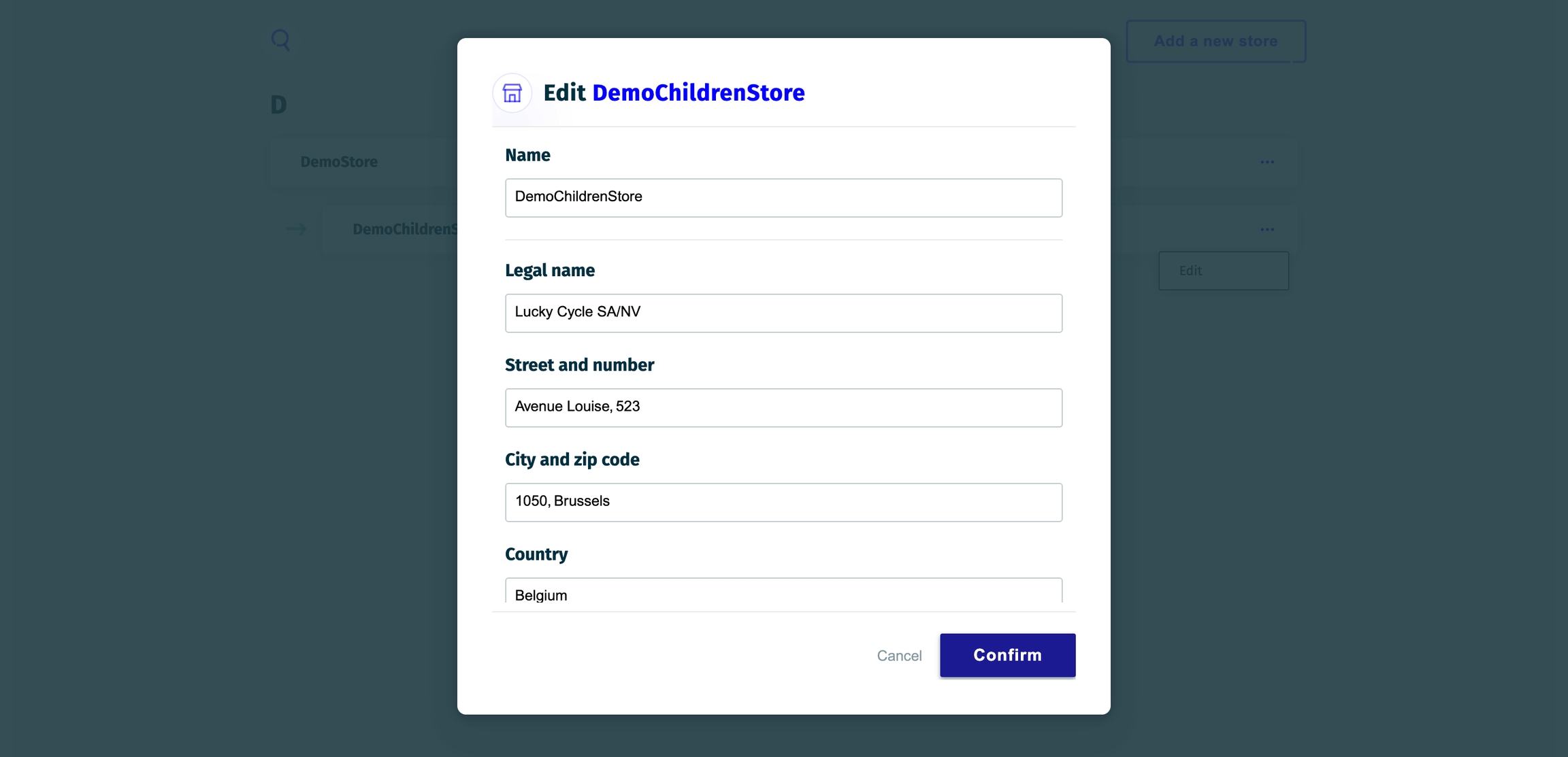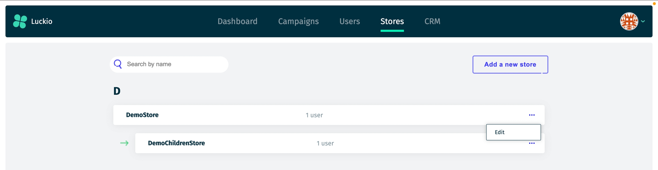 After a store is created, all its details (except the parent store) can be updated by accessing the store's menu.
